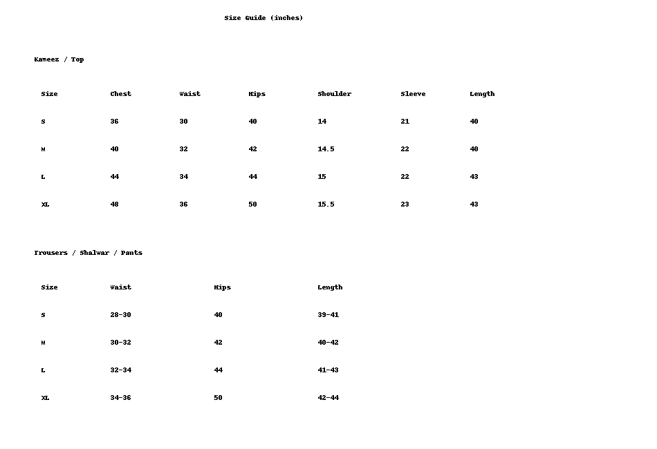 Includes: 3-piece set (Kameez, Trouser & Matching Dupatta)