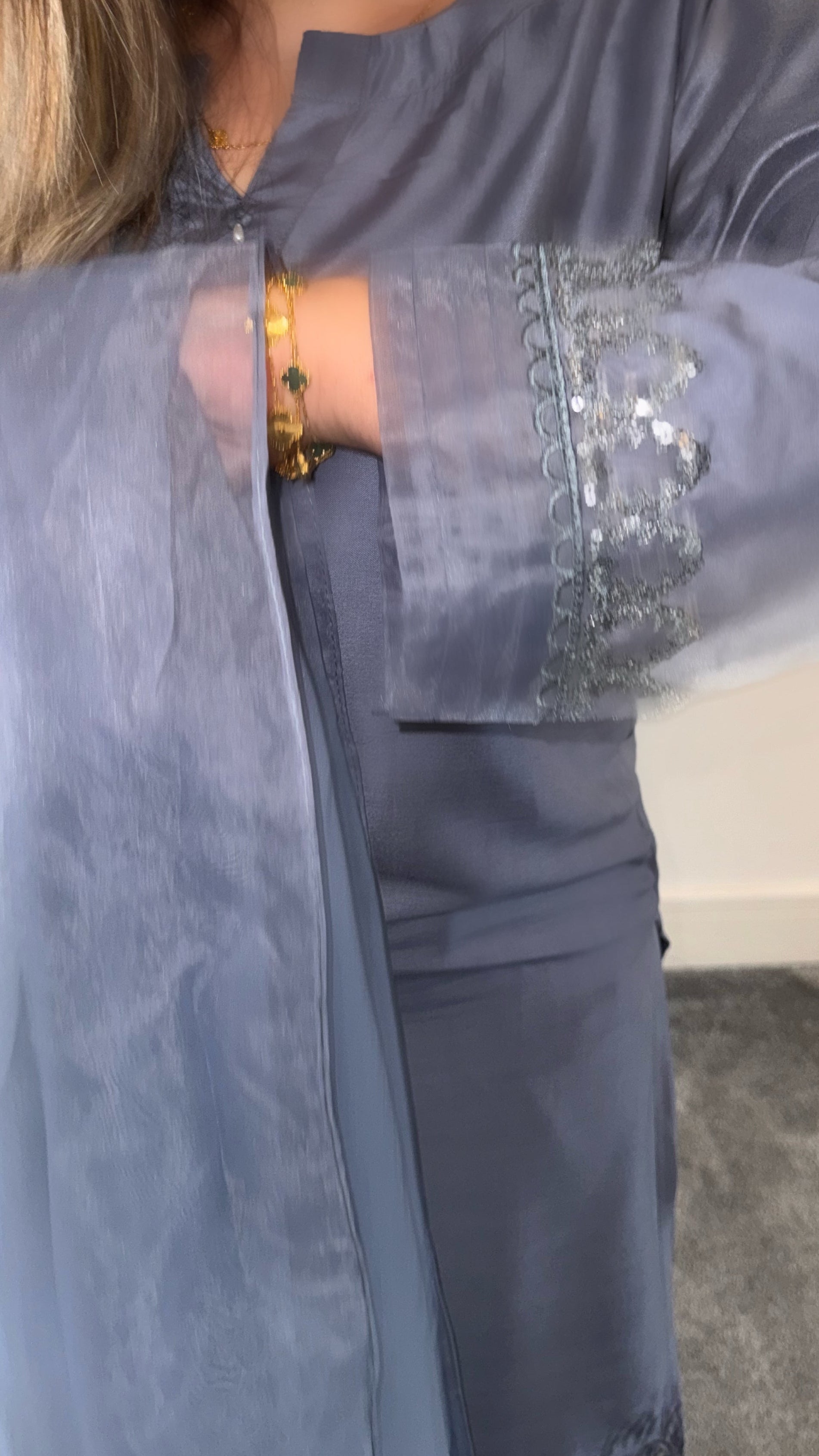 Refined, graceful, and effortlessly chic — the Sitara Farshi is a timeless statement piece. Crafted from a premium cotton wool blend, this three-piece ensemble features a beautifully tailored kameez paired with a traditional farshi shalwar, offering both comfort and sophistication.